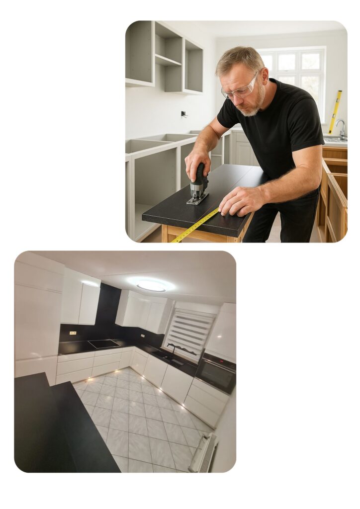 Als spezialisiertes Montageunternehmen bieten wir professionelle Küchenmontage, Geräteanschlüsse, Arbeitsplattenzuschnitte und individuelle Lösungen – zuverlässig, sauber und mit handwerklicher Expertise.